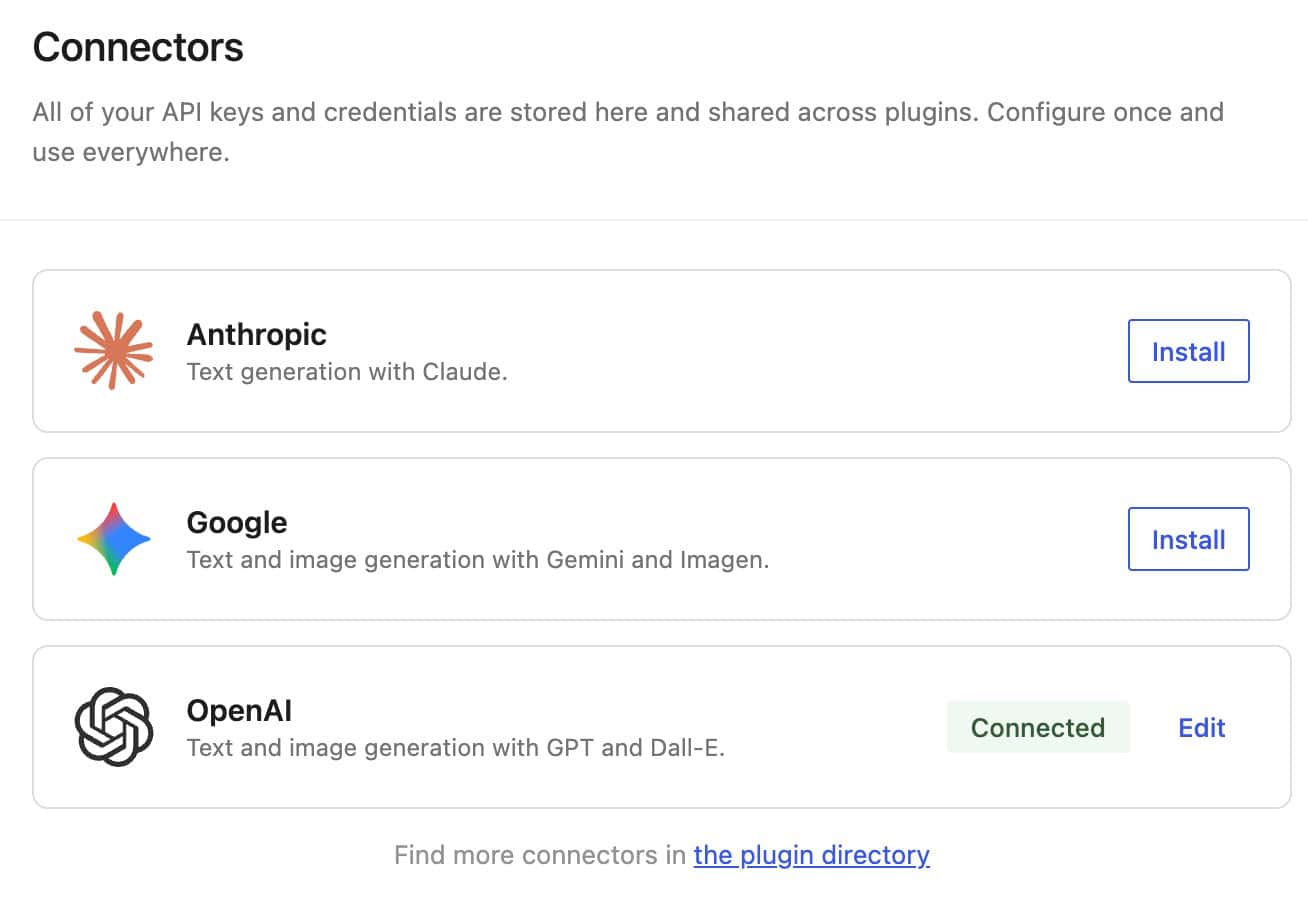 Here you can set up your credentials – OpenAI, Gemini and Anthropic are available per default.